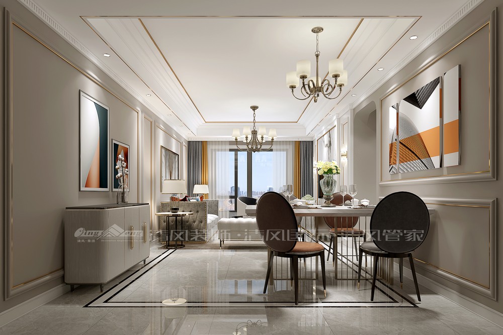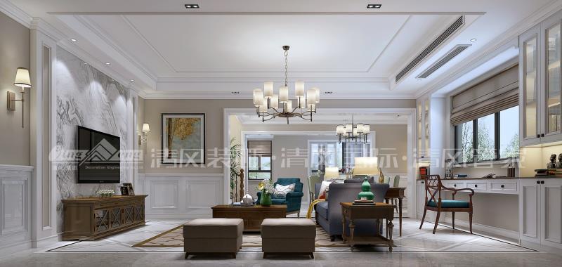 本案業(yè)主第一次到公司就訂了設(shè)計(jì),確定了美式風(fēng)格最符合業(yè)主對家的期望,鑒于業(yè)主希望有足夠的收納空間,在餐廳處改動了墻體增設(shè)了餐邊柜,進(jìn)門口的玄關(guān)柜起到收納以及裝飾端景的作用,廚房采用整面移門增加了整個餐廳的采光度。 客餐廳以暖色系為主色,沒有多余繁瑣的線條,客廳整個空間寬敞明亮。最后用冷色調(diào)的皮質(zhì)沙發(fā)配上暖色的窗簾, 加之亮黃色單椅,豐富整體空間色調(diào)。一遍遍的設(shè)計(jì)推敲,確??梢愿玫睦每臻g也更加適合業(yè)主家庭生活。
