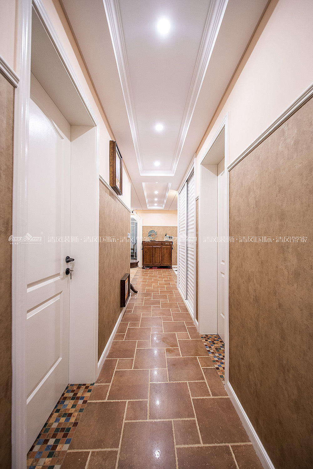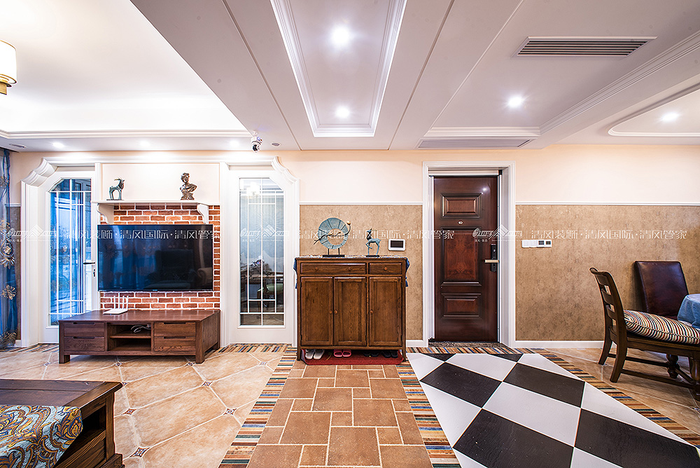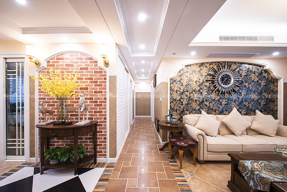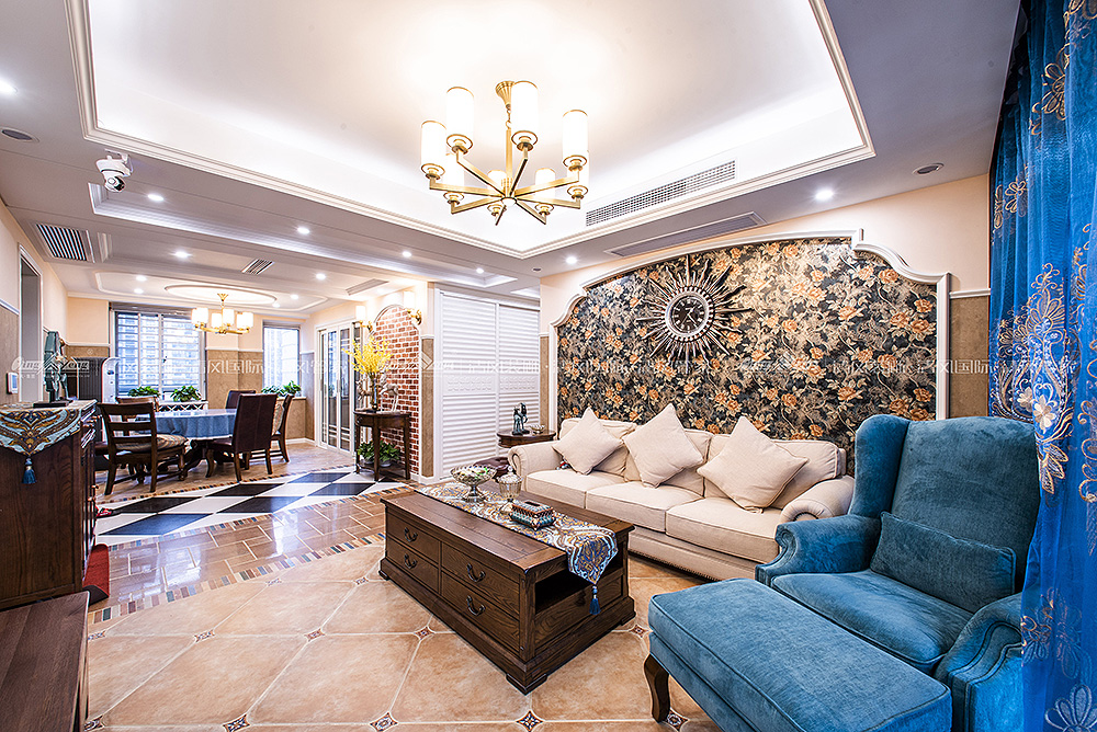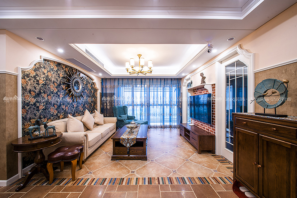 本案采用多元化的空間構(gòu)造、注重色彩及軟裝,將懷古的浪漫情懷與現(xiàn)代人對(duì)生活的需求相結(jié)合,兼容華貴典雅與時(shí)尚現(xiàn)代,反映出個(gè)性化的美學(xué)觀點(diǎn)和文化品位。在空間布局上,不僅南北通透,而且南面大型落地窗的設(shè)計(jì)使室內(nèi)擁有良好的采光條件。在享受充足光照的同時(shí)也可將室外美景攬與眼下,整個(gè)空間顯得特別溫馨、舒適。設(shè)計(jì)師精心選擇的撞色地磚、質(zhì)感上佳的墻紙等,不僅讓人眼前一亮,更是彰顯出居室精致優(yōu)雅之美,傳達(dá)出平和而富有內(nèi)涵的空間氣韻。王鍇