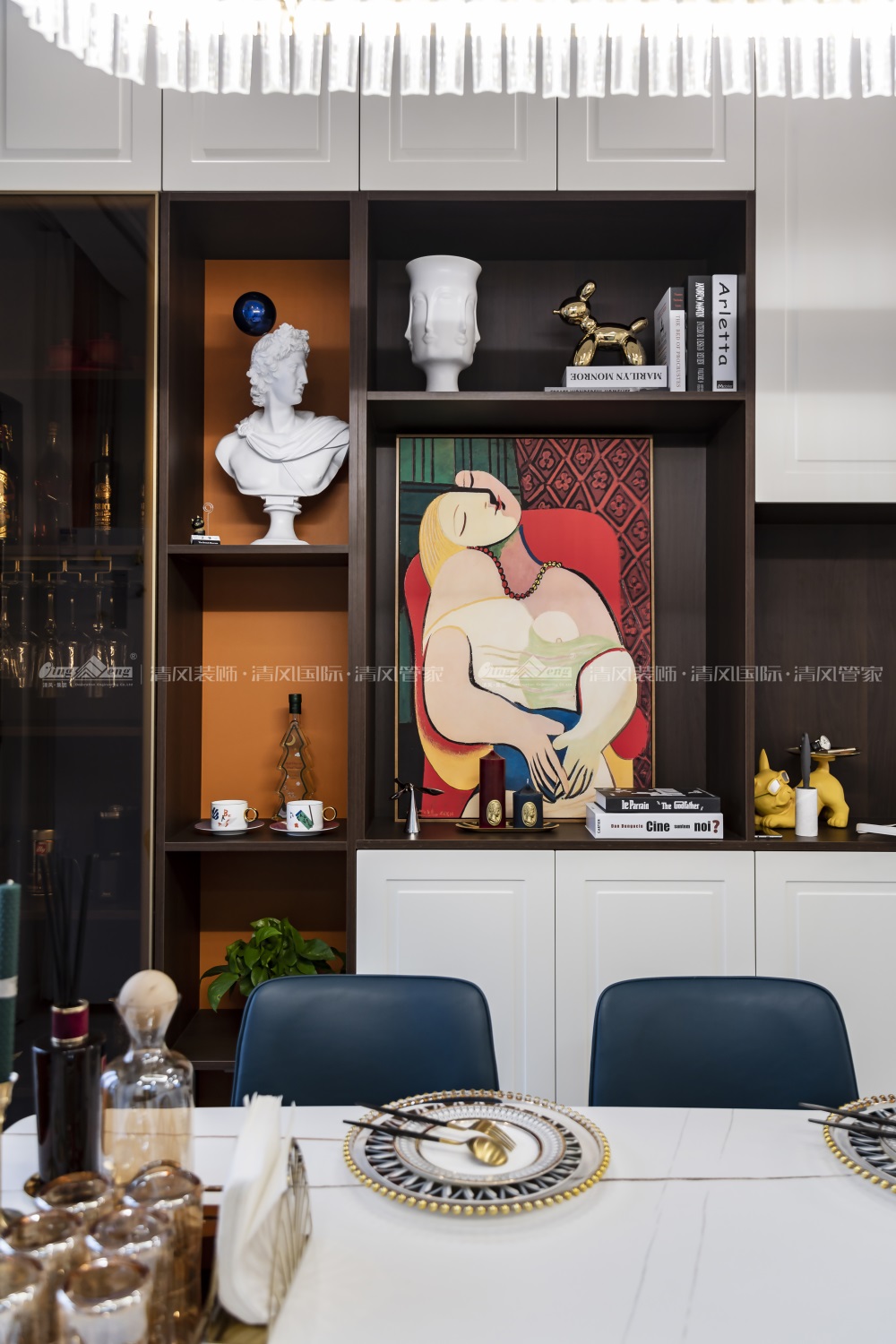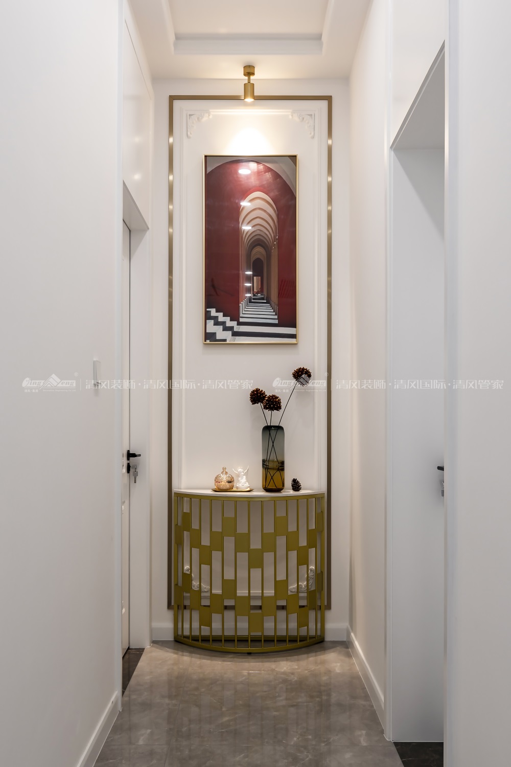 本案整體色調(diào)以白色為基調(diào),細(xì)致的石膏線和雕花做修飾。明亮?xí)r尚的家具和富有藝術(shù)情懷的裝飾品做空間點(diǎn)綴,滿足生活功能的基礎(chǔ)上凸顯業(yè)主的精致和浪漫。