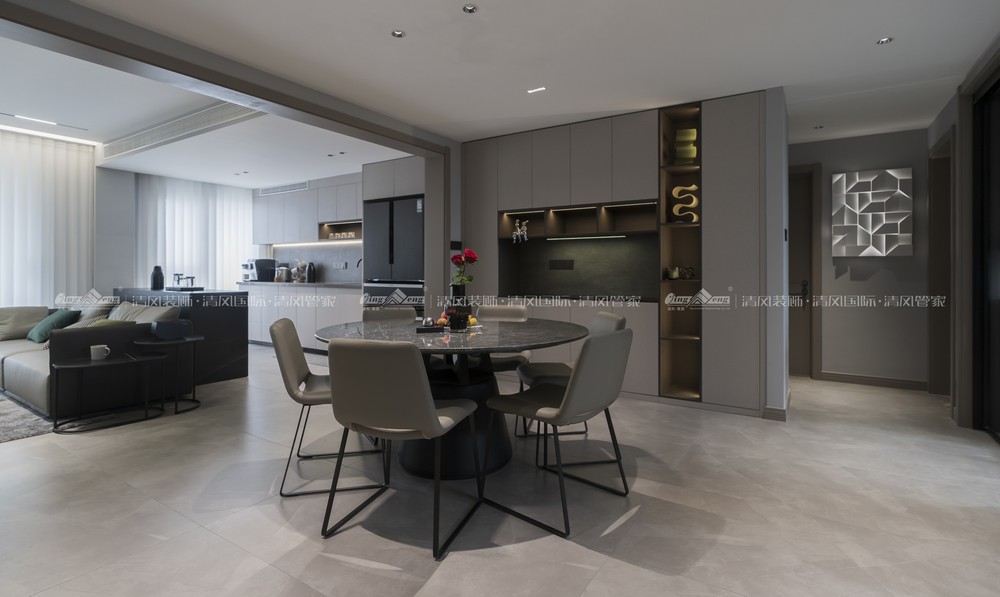 現(xiàn)代風(fēng)格,并非只有現(xiàn)代的簡(jiǎn)約,它是一種注重功能性與美學(xué)的設(shè)計(jì)風(fēng)格,融入簡(jiǎn)單、干凈和精致的設(shè)計(jì)元素,通過對(duì)比色的點(diǎn)綴,利落的線條,簡(jiǎn)潔的形式感,讓空間更加有層次變化,創(chuàng)造出一種低調(diào)而高級(jí)的氛圍。
